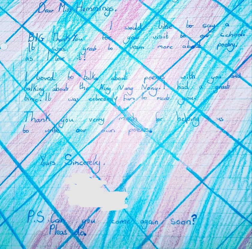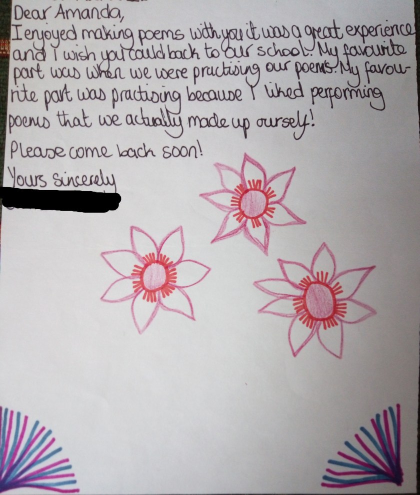 “My favourite aspect was the whole workshop, but the part I enjoyed was when Amanda said the poem.”